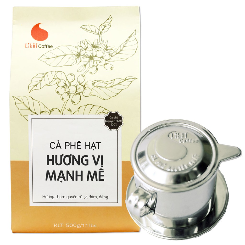 Giới thiệu Combo phin pha cafe inox cao cấp và cà phê hạt nguyên chất 100% hương vị mạnh mẽ Light Coffee 500gr