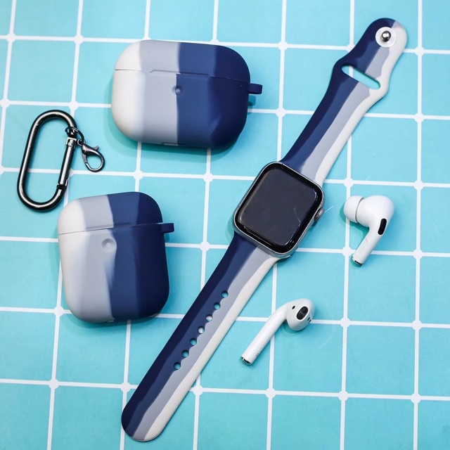 COMBO PHỤ KIỆN : DÂY CAO SU SỌC PHỐI MÀU CỰC XINH CHO APPLEWATCH VÀ BAO DA AIRPODS1/2/Pro