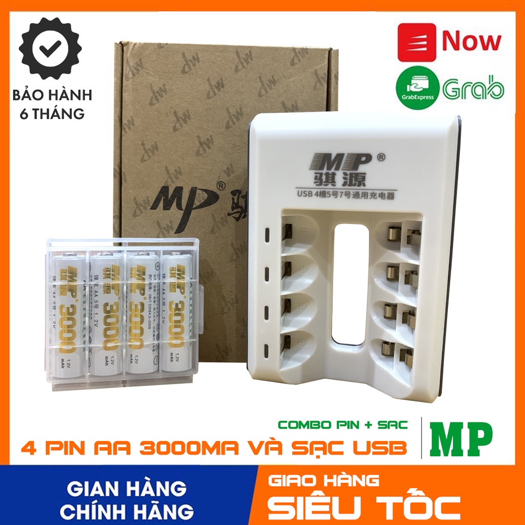 COMBO Pin AA 3000Mah + Sạc đa năng AA/AAA hàng chính hãng MP nội địa chuẩn dung lượng, tự ngắt khi sạc đầy