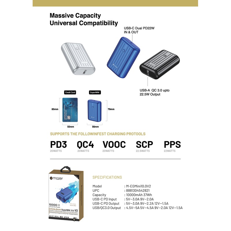 - Khả năng tương thích phổ quát: SuperMini 10.0V2 cung cấp năng lượng cho điện thoại và máy tính bảng, đồng thời có thể tăng gần gấp đôi thời lượng pin của máy tính xách tay nhỏ hơn