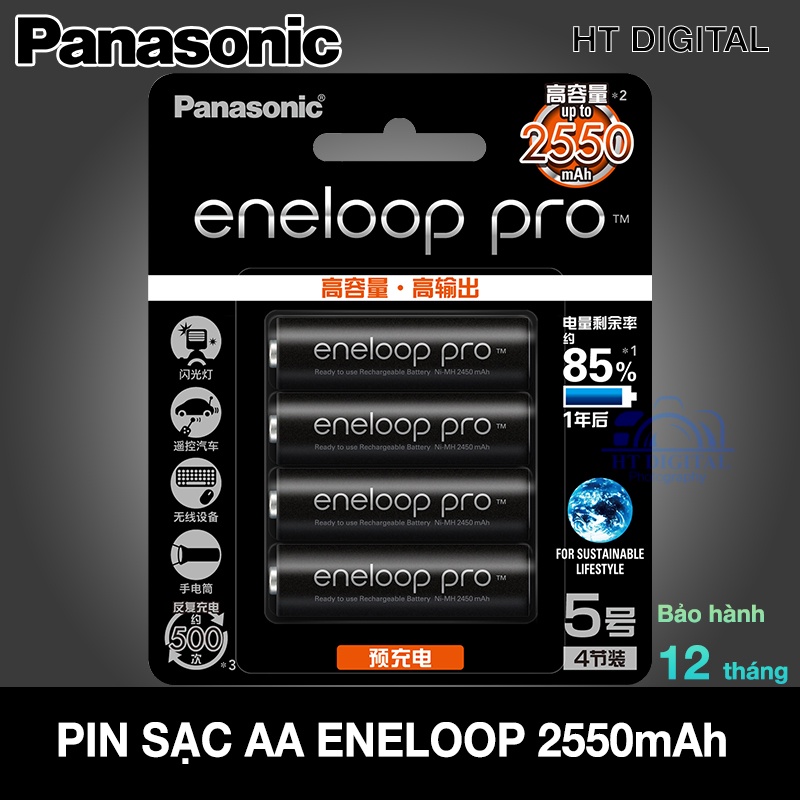 Pin Sạc AA Eneloop Pro BK - 3HCCE/4B Chính Hãng Sản Xuất Tại Nhật Bản Cho thời gian lưu trữ năng lượng lên 05 năm . Là Dòng Pin dung lượng cao nhất của Panasonic , Lên tới 2550 mah . Đảm bảo đáp ứng một cách tốt nhất cho nhu cầu năng lượng của mọi thiết bị.