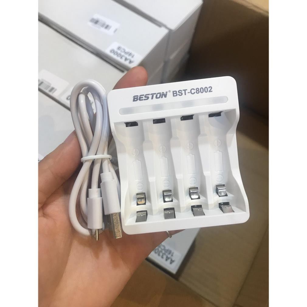 Combo Sạc Beston C8002 và pin sạp 2A 3A dung lượng lớn