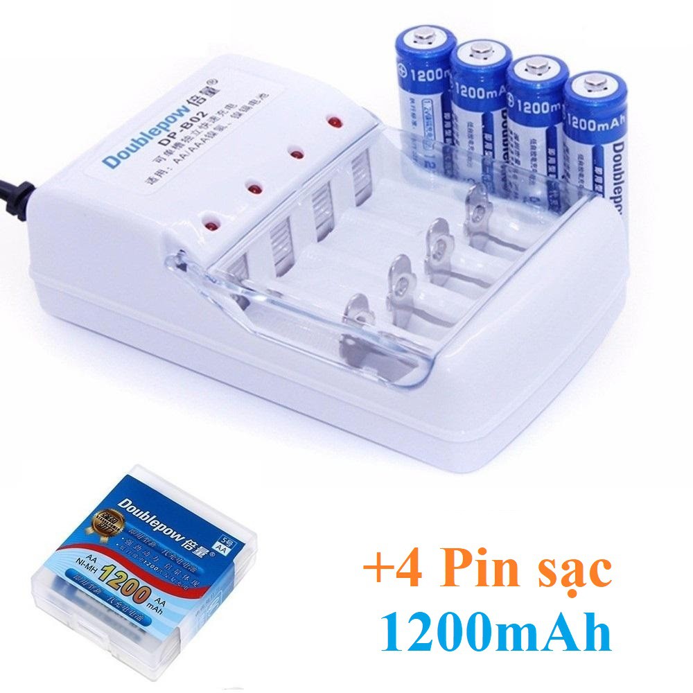 Combo sạc Doublepow DP-B02 và 4 Pin sạc Doublepow AA 1200mAh