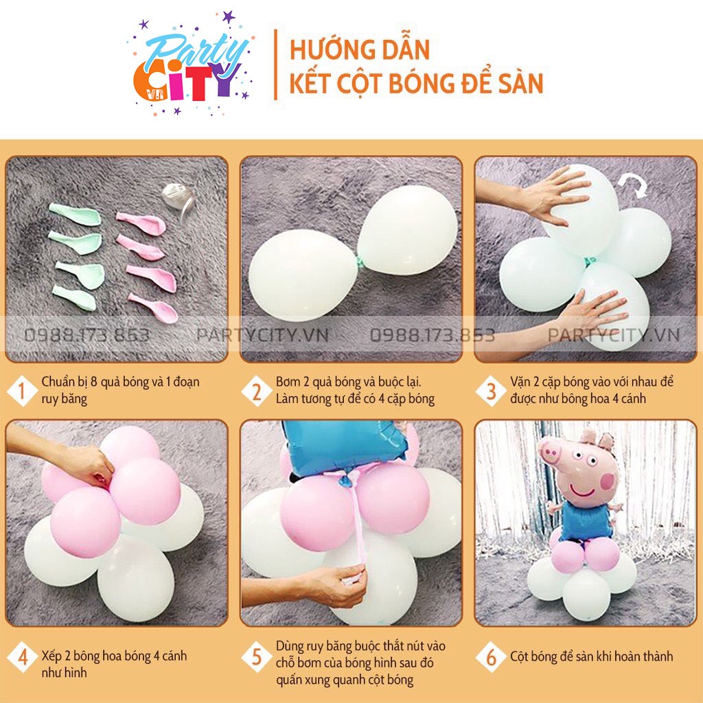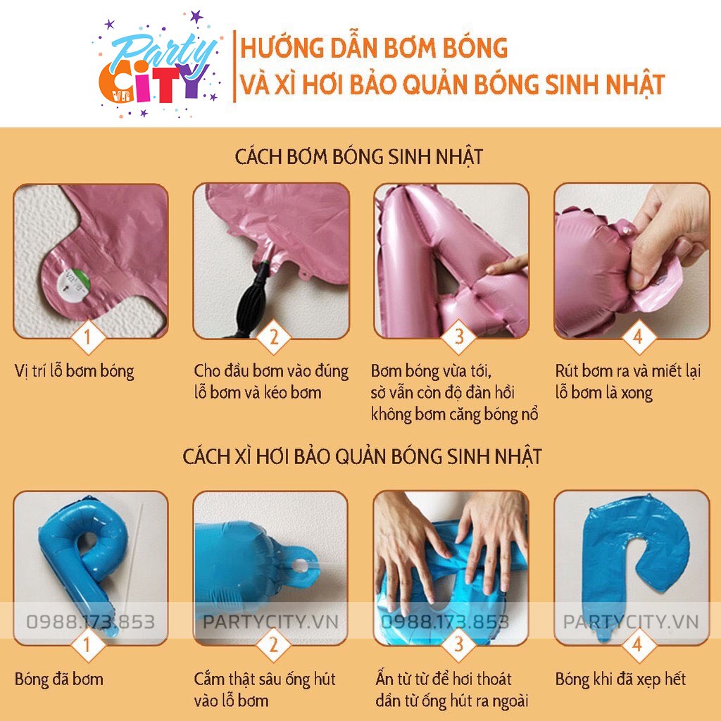 - Set sinh nhật được tặng kèm bơm và băng dính chuyên dụng giúp bố mẹ trang trí đơn giản, nhanh chóng..