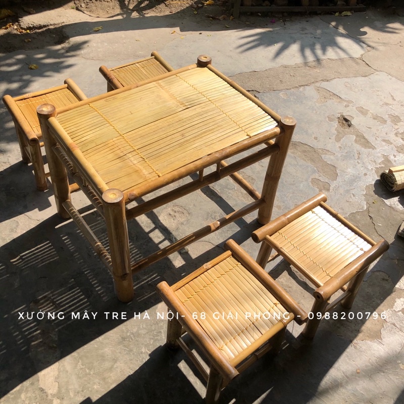 Bộ bàn ghế tre mộc (4 ghế + 1 bàn)-Kích thước ghế: 30x30x30cm
