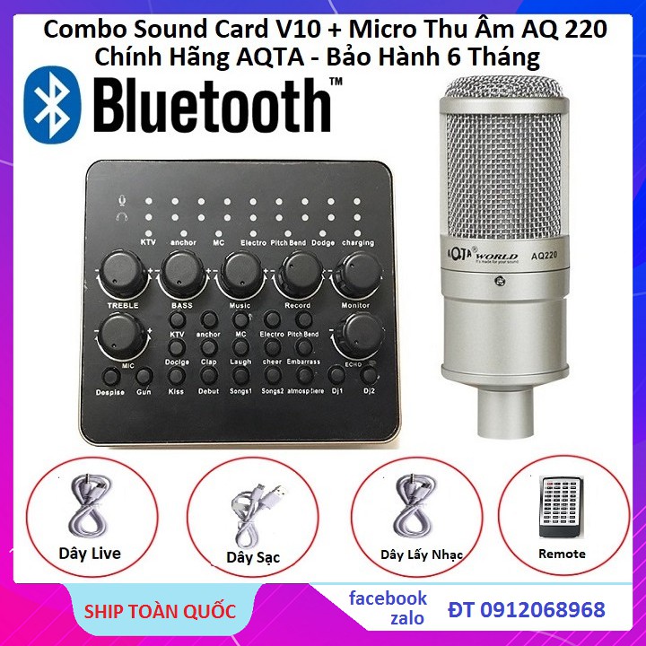 Combo Sound Card V10 Bluetooth + Micro Thu Âm AQ 220 Chính Hãng AQTA Bộ Hay Nhất Hiện Nay Bảo Hành 6 Tháng