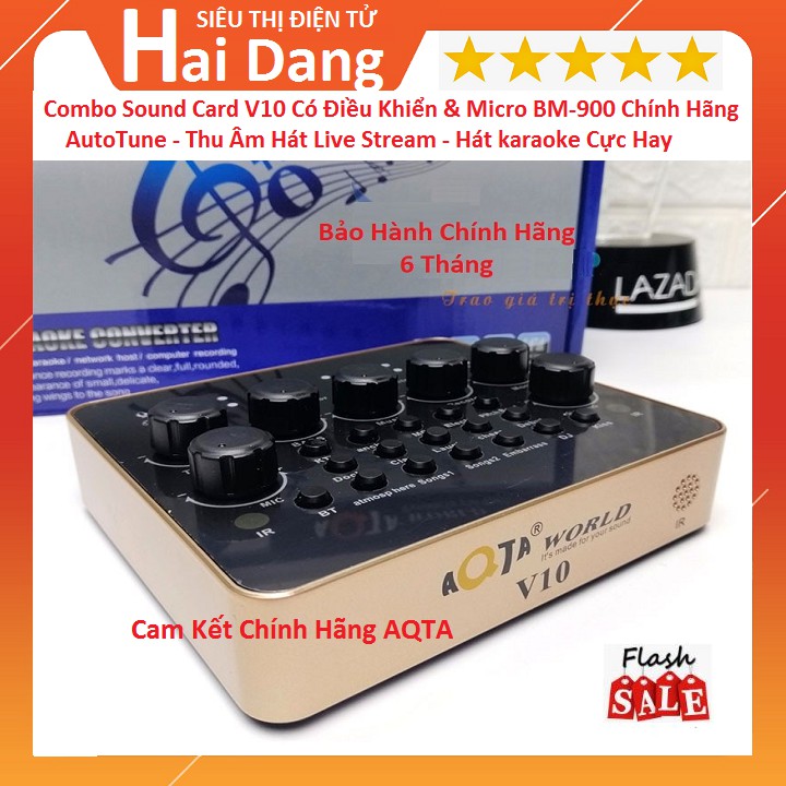 Combo Sound Card V10 Chính Hãng AQTA Kèm Điều Khiển & Mic BM-900 Thu Âm Hát Live Stream - Hát karaoke Cực Hay