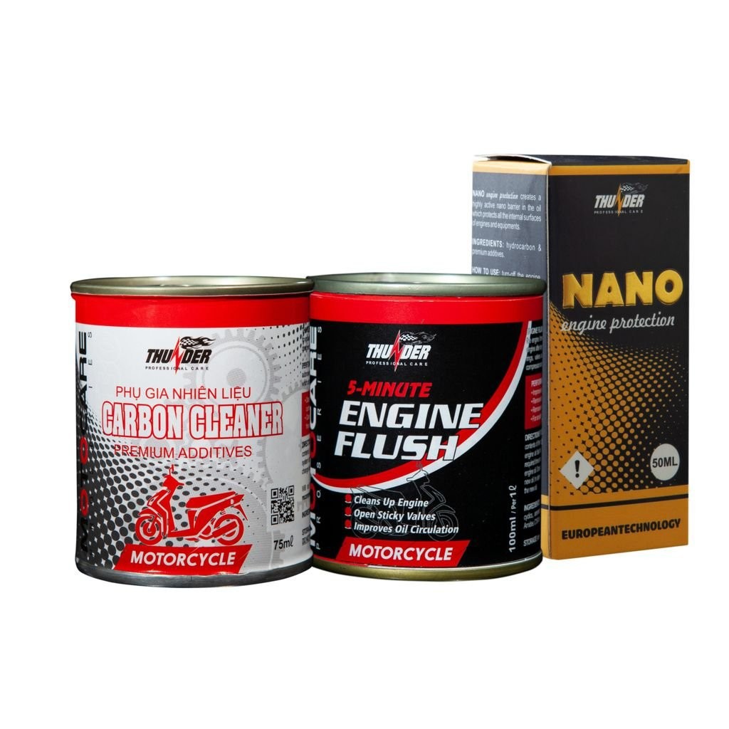 Combo súc rửa động cơ Thunder, Phụ Gia Nano nhớt, phụ gia súc xăng, nhiêu liệu, kim phun FI, sạch buồng đốt Thunder