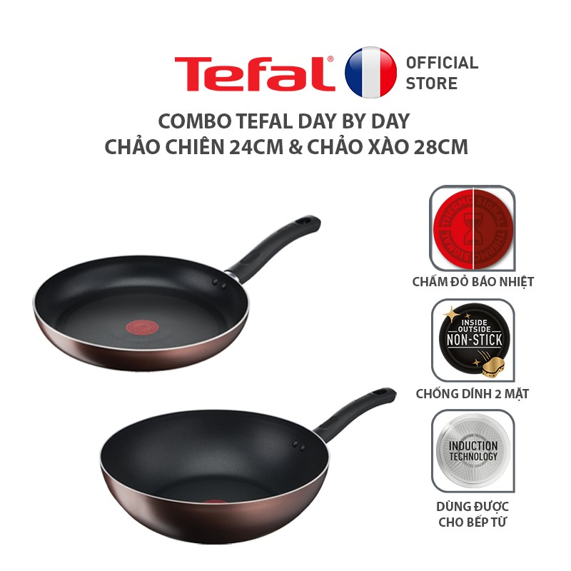 [Mã LIFEHL25 giảm 10% đơn 350K] Combo Tefal Day By Day Chảo chiên 24cm & Chảo xào 28cm