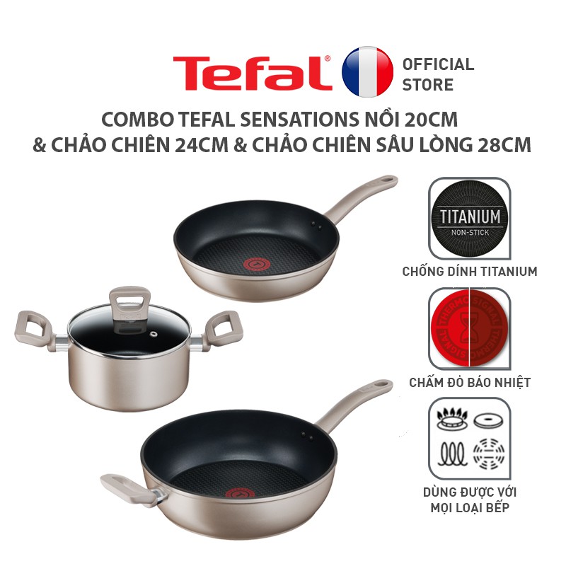 Giới thiệu [Mã LIFEHL25 giảm 10% đơn 350K] Combo Tefal Sensations Nồi 20cm & Chảo chiên 24cm & Chảo chiên sâu lòng 28cm