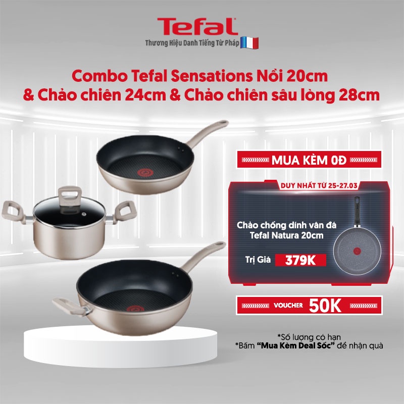 [Mã LIFEHL25 giảm 10% đơn 350K] Combo Tefal Sensations Nồi 20cm & Chảo chiên 24cm & Chảo chiên sâu lòng 28cm