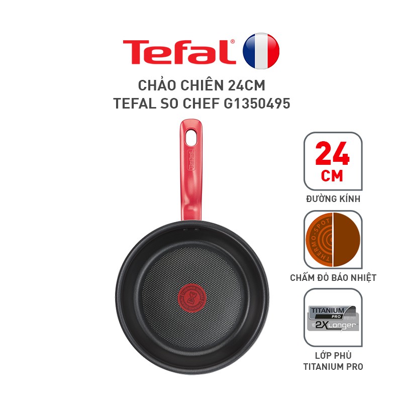 Combo Tefal So Chef Chảo chiên 24cm & Chảo chiên sâu lòng 28cmNấu ăn dễ dàng hơn nhờ tương thích với mọi mặt bếp, kể cả bếp từ. Cùng với lớp phủ chống dính Titanium giúp thức ăn sẽ không bị dính vào chảo. Chấm đỏ báo nhiệt thông minh cho bạn biết nhiệt độ lý tưởng bắt đầu nấu. Kết hợp mặt đế từ giúp thức ăn chín đều hơn.