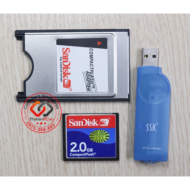 Combo thẻ nhớ CF Card SANDISK 2GB + Áo thẻ nhớ CNC + đầu đọc thẻ CF USB chuyên dụng
