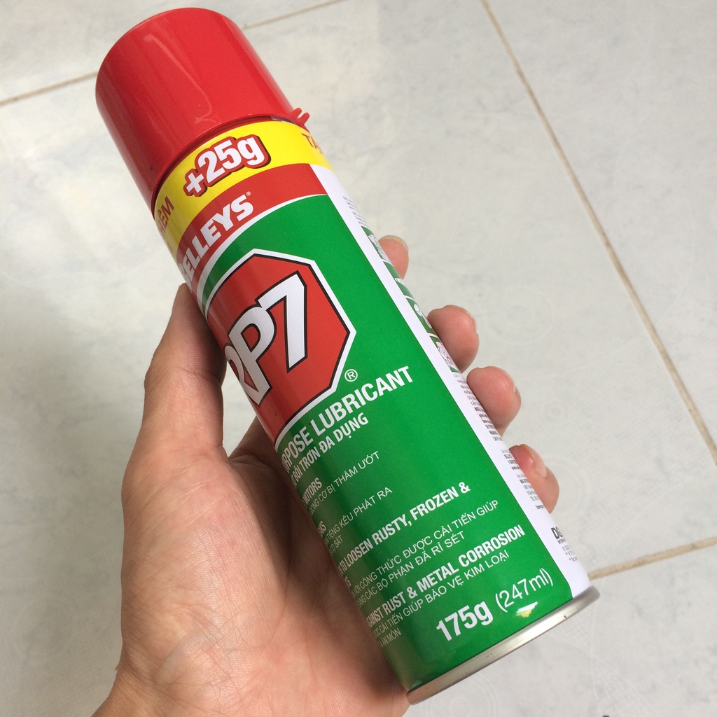 - Dầu chống rỉ sét RP7 được cung cấp dưới dạng chai xịt đa dụng, có tác dụng chống rỉ (gỉ) sét, bôi trơn, bảo vệ kim loại chống ăn mòn,… Đây là một sản phẩm được tin dùng của Selleys (Úc), là một hỗn hợp gồm một loại dầu cao cấp dễ thấm nhờn, đươc chế tạo bằng công thức cải tiến và một hóa chất đậm đặc chống rỉ (gỉ) sét.