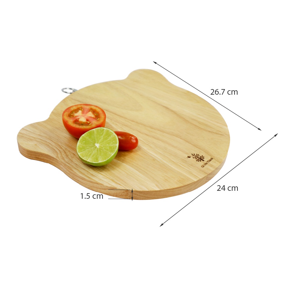 - Thớt mặt gấu. KT: 24 x 26.7 x 1.8 cmThớt Gỗ Đức Thành được làm từ gỗ đã qua xử lý loại bỏ các tạp chất, chống mối, mọt. Thớt chữ nhật khoen xoay được thiết kế với bề mặt gỗ láng mịn, có rãnh xung quanh, phù hợp cho việc sử dụng cắt, thái các loại thực phẩm có tiết ra nước như cà chua, thịt bò... Vân gỗ có màu sắc sáng giúp dễ dàng vệ sinh sản phẩm sau khi dùng.