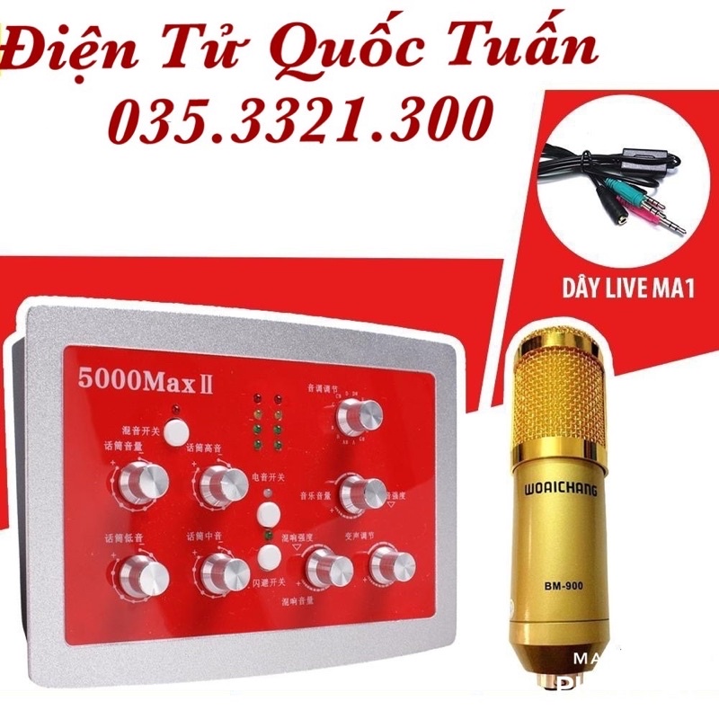 Combo thu âm 3 món thu âm mic BM900-Card HF5000 MAX AUTO TUN dây livestream bh 12 tháng