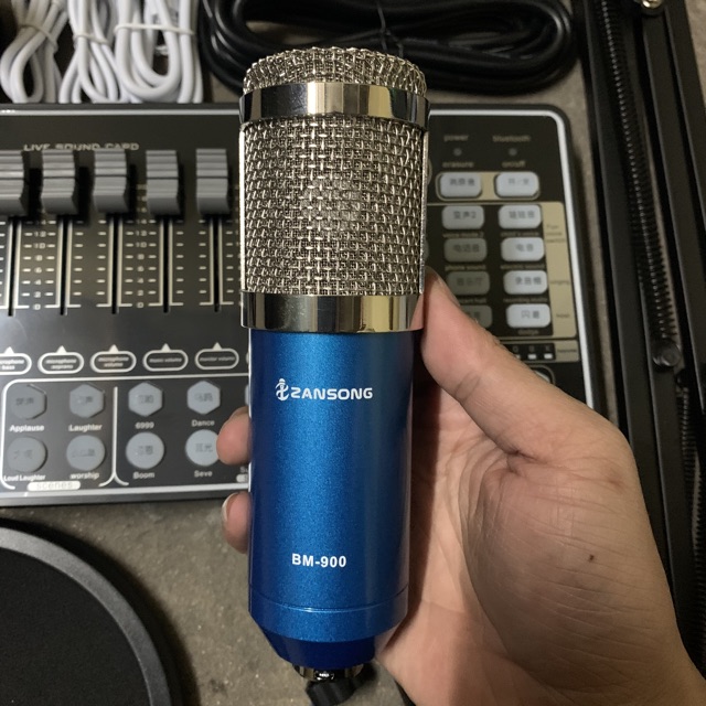 Combo thu âm livestream Mic BM900 zansong và sound card V8 chân kẹp+màng lọc đầy đủ bh