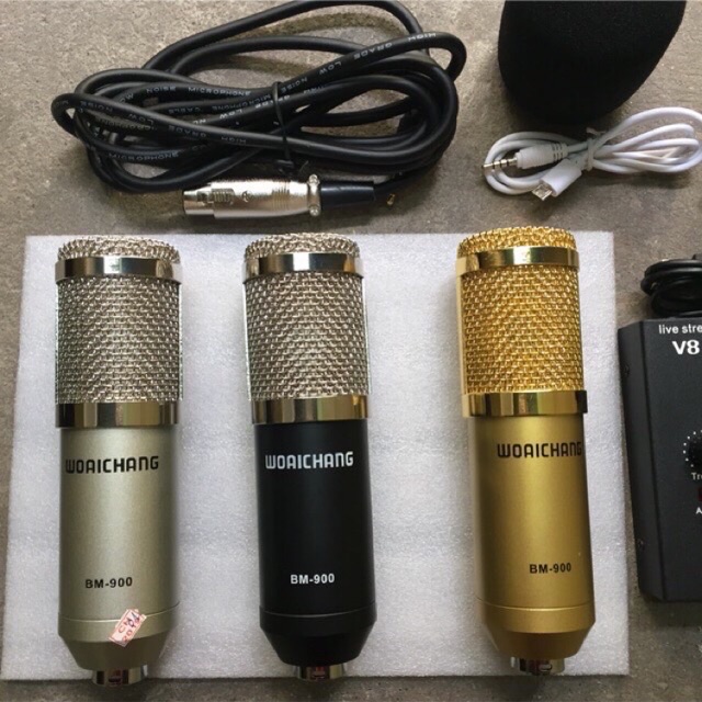Thiết Bị Âm Thanh > Micro thu âm || Combo thu âm livestream mic bm900-sound card xox ks108 kèm dây livestream 3 màuCòn hàng