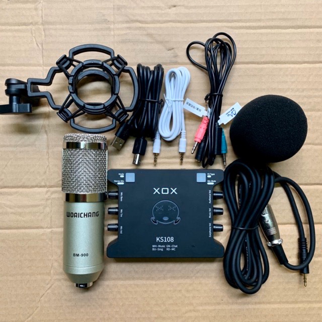 Combo thu âm livestream mic bm900-sound card xox ks108 kèm dây livestream 3 màu