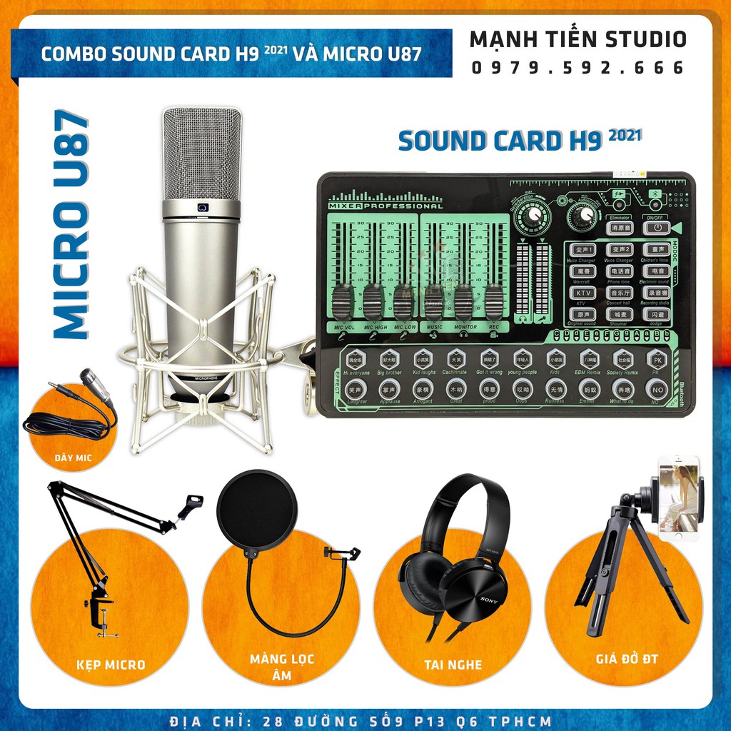 Combo thu âm livestream karaoke Sound Card H9 2021 Và Micro U87-MA87 tặng kèm đầy đủ phụ kiện bảo hành 12 tháng