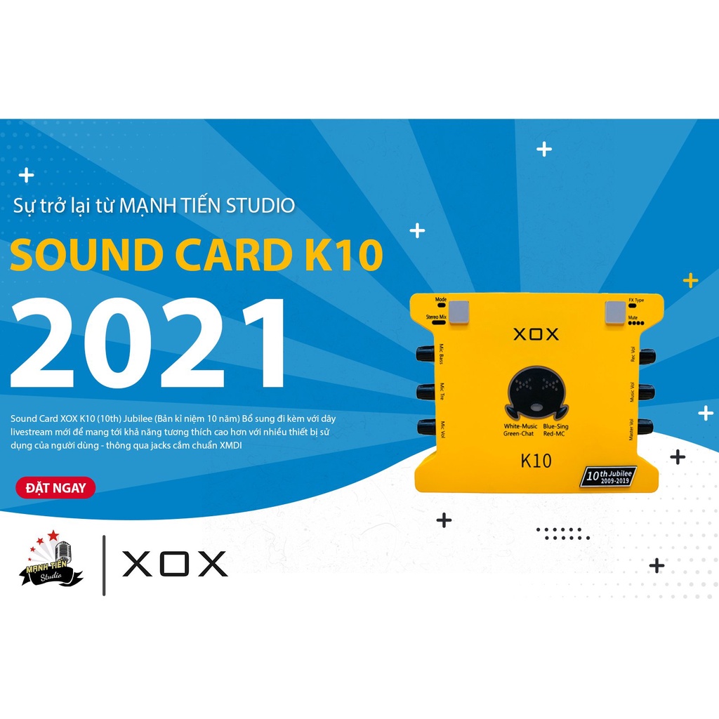 Chip vi xử lý cũng được tách ra độc lập, mỗi con chip xử lý 1 chức năng khác nhau: USB, DSP, ADC, DAC. Đặc biệt chip DSP thế hệ mới là trình điều khiển âm thanh tuyệt vời, đáng giá nhất trong phiên bản mới này. Trong tầm giá khoảng 1tr đồng, XOX K10 tiếng Anh phiên bản 2020 là dòng sản phẩm chính hãng chất lượng tốt nhất. Kết hợp tốt với các loại micro thu âm phổ biến như: ISK AT100, Woaichang BM900, AMI BM900…Hoặc các loại micro cao cấp như Takstar K200, Takstar K320…Các tính năng nổi bật của XOX K10 tiếng Anh phiên bản mới 2020