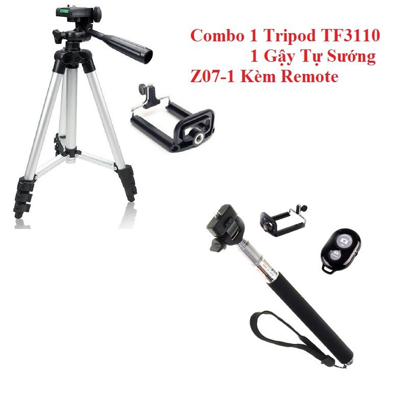 Điện Thoại & Phụ Kiện > Phụ kiện > Phụ kiện selfie > Gậy selfie || Combo Tự Sướng gồm Tripod TF3110 Và Gậy Kèm Remote bluietoothCòn hàng