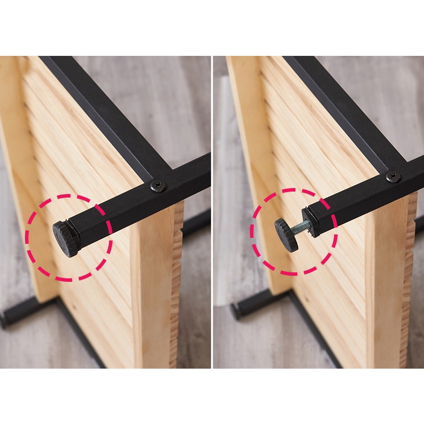 - Chất liệu: Gỗ thông nhập khẩu Newzealand chấm thấm nước/ chân sắt sơn tĩnh điện cao cấp không trầy, tróc, không gỉ
