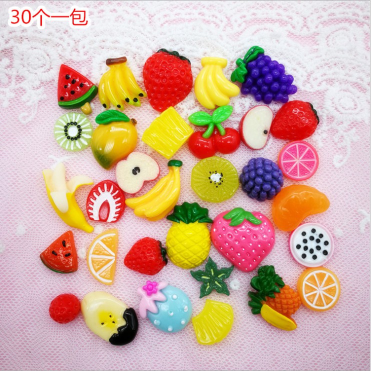 Combo túi 30 mô hình hoa quả trái cây cắt lát trang trí case điện thoại, quần áo, huy hiệu, nhà búp bê, DIY