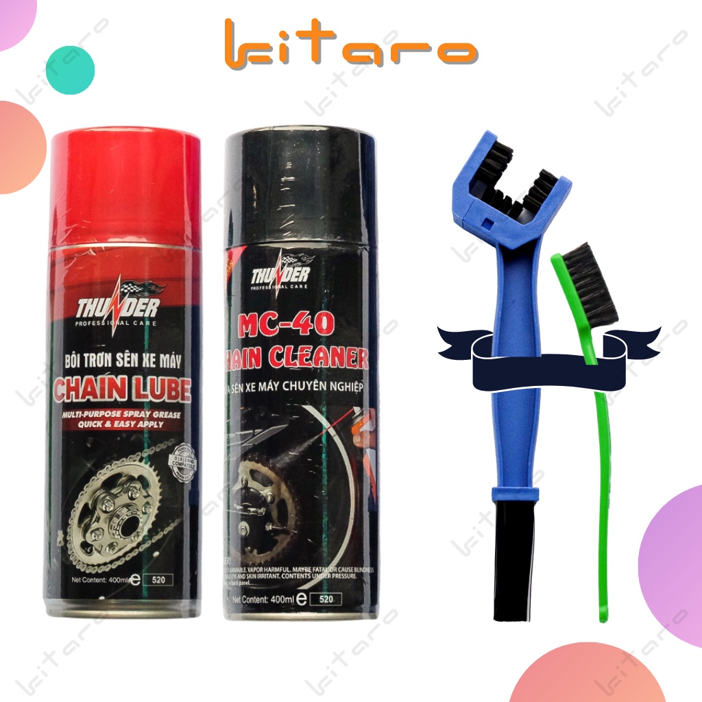 Combo vệ sinh sên MC-40 400ml, Bôi trơn dưỡng sên Thunder 400ml và bàn chải sên chuyên nghiệp