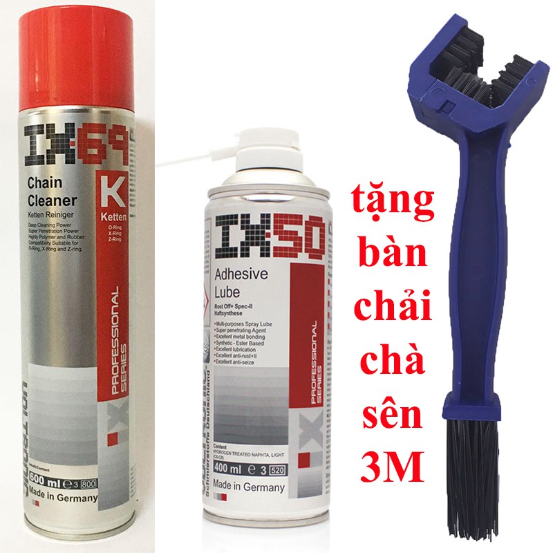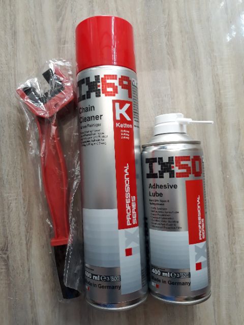 Thông tin sản phẩm:nhập khẩu từ ĐứcBộ sản phẩm gồm:1 chai vệ sinh sên IX69 600ml và 1 chai dưỡng sên IX50 400ml
