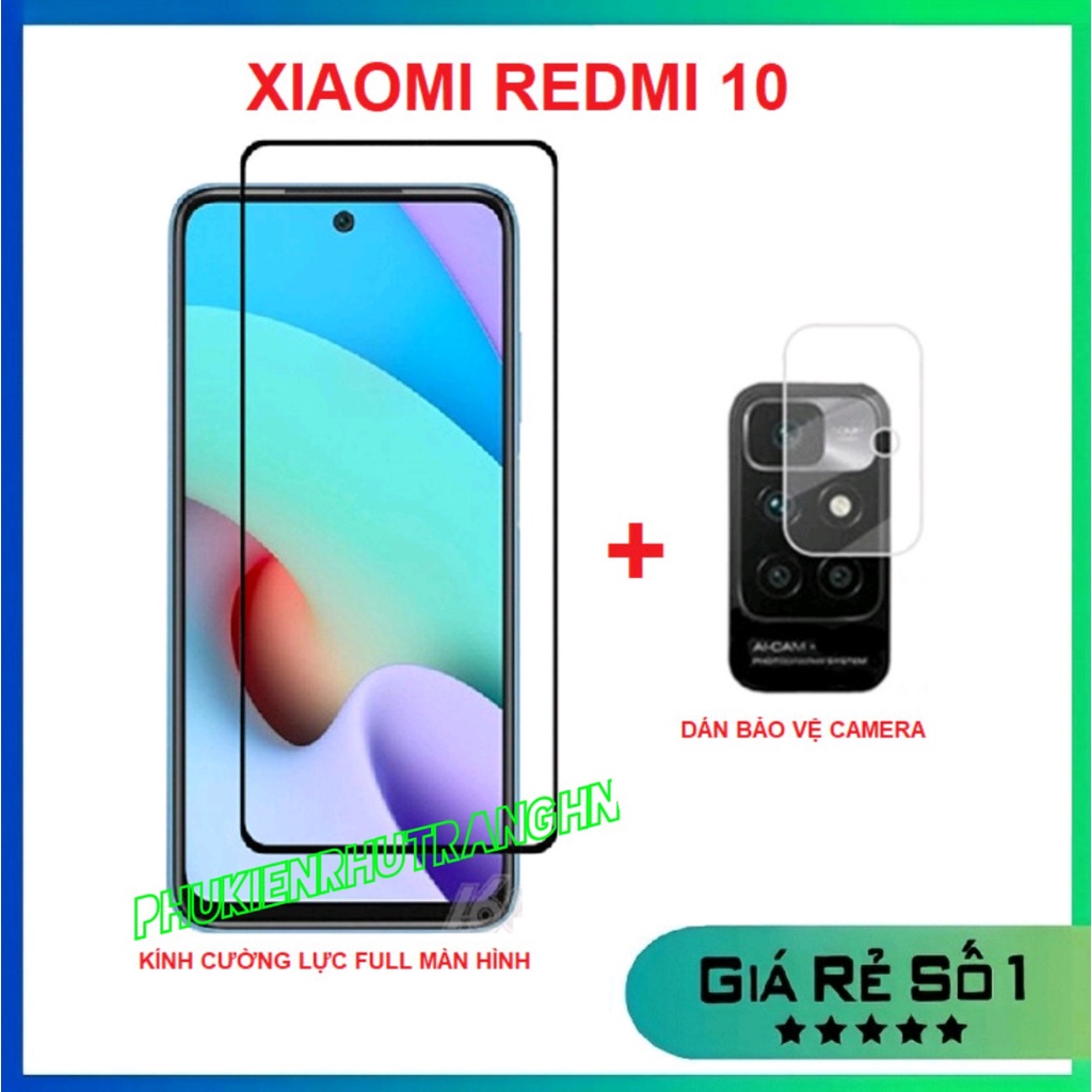 Combo Xiaomi Redmi 10 / Redmi Note 10 / Note 10S / Redmi Note 10 Pro kính cường lực full màn hình + dán bảo vệ camera
