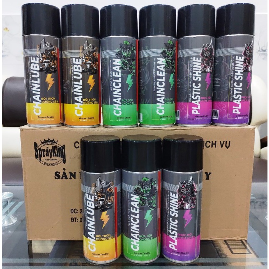 Ô tô > Dầu nhớt và phụ gia ô tô > Mỡ & Chất bôi trơn || Combo xịt vệ sinh sên Chain Clean SprayKing 400ml, bảo dưỡng sên, xích Chain Lube 400ml tặng kèm bàn chải sên 3D cao câpCòn hàng
