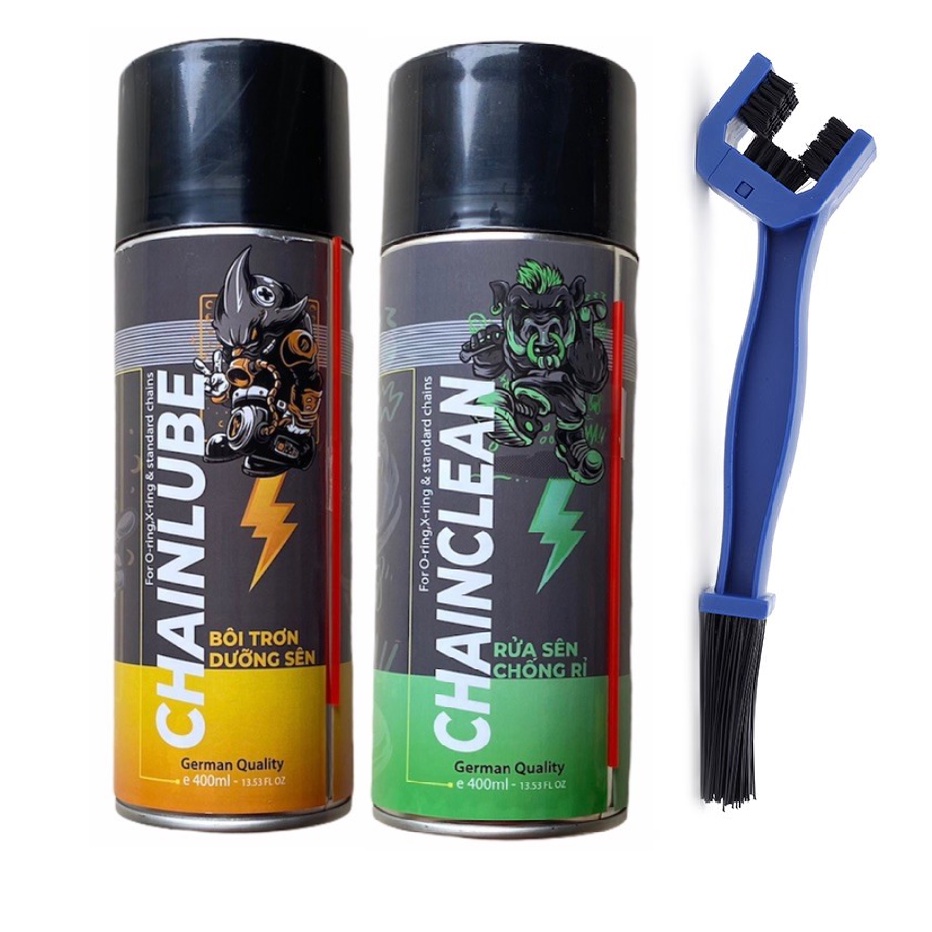 Combo xịt vệ sinh sên Chain Clean SprayKing 400ml, bảo dưỡng sên, xích Chain Lube 400ml tặng kèm bàn chải sên 3D cao câp