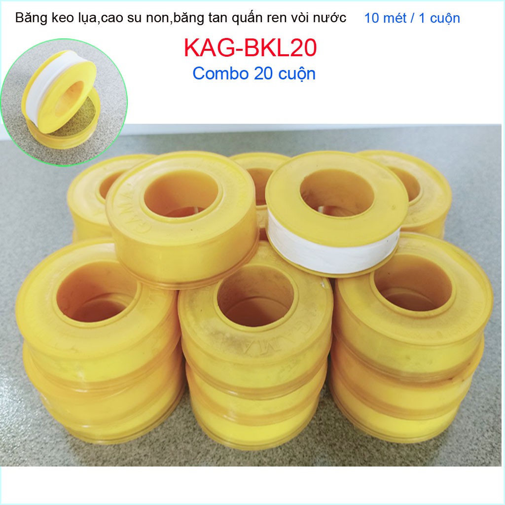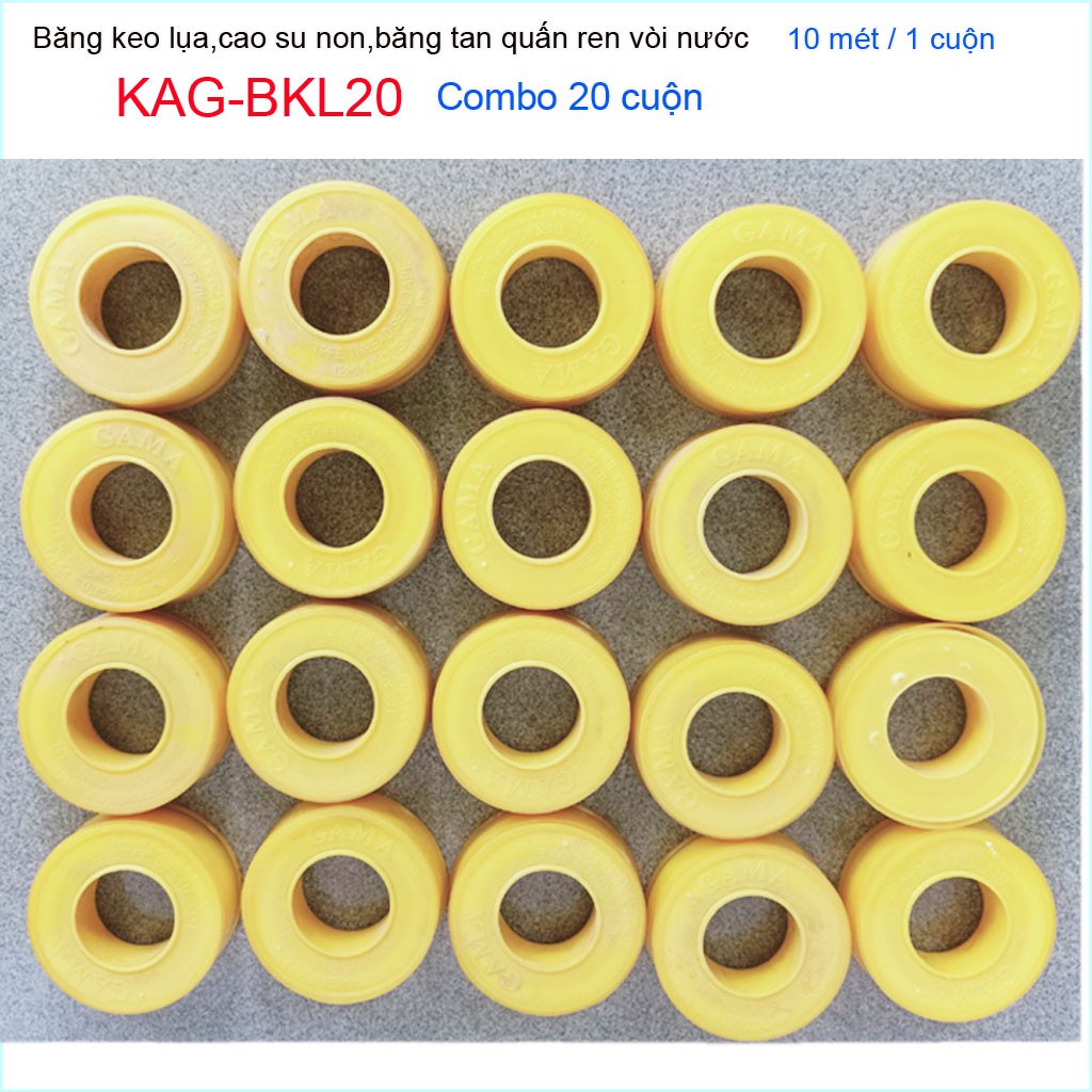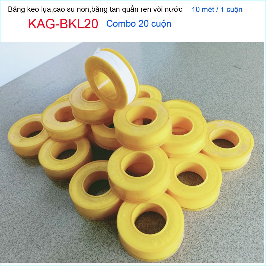 Combo20 hộp băng keo lụa 10m, combo20 cuộn cao su non 10 meters quấn ống nước KAG-BKL20