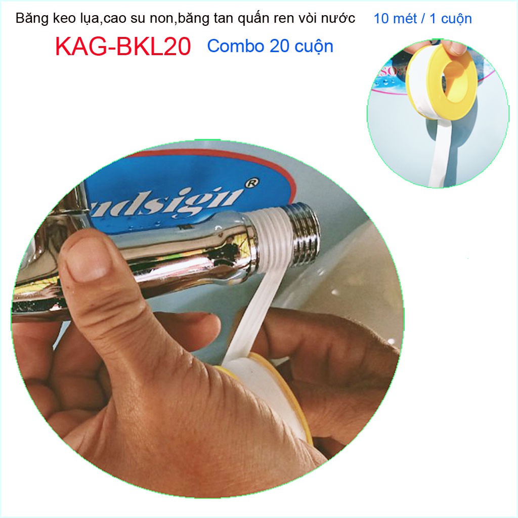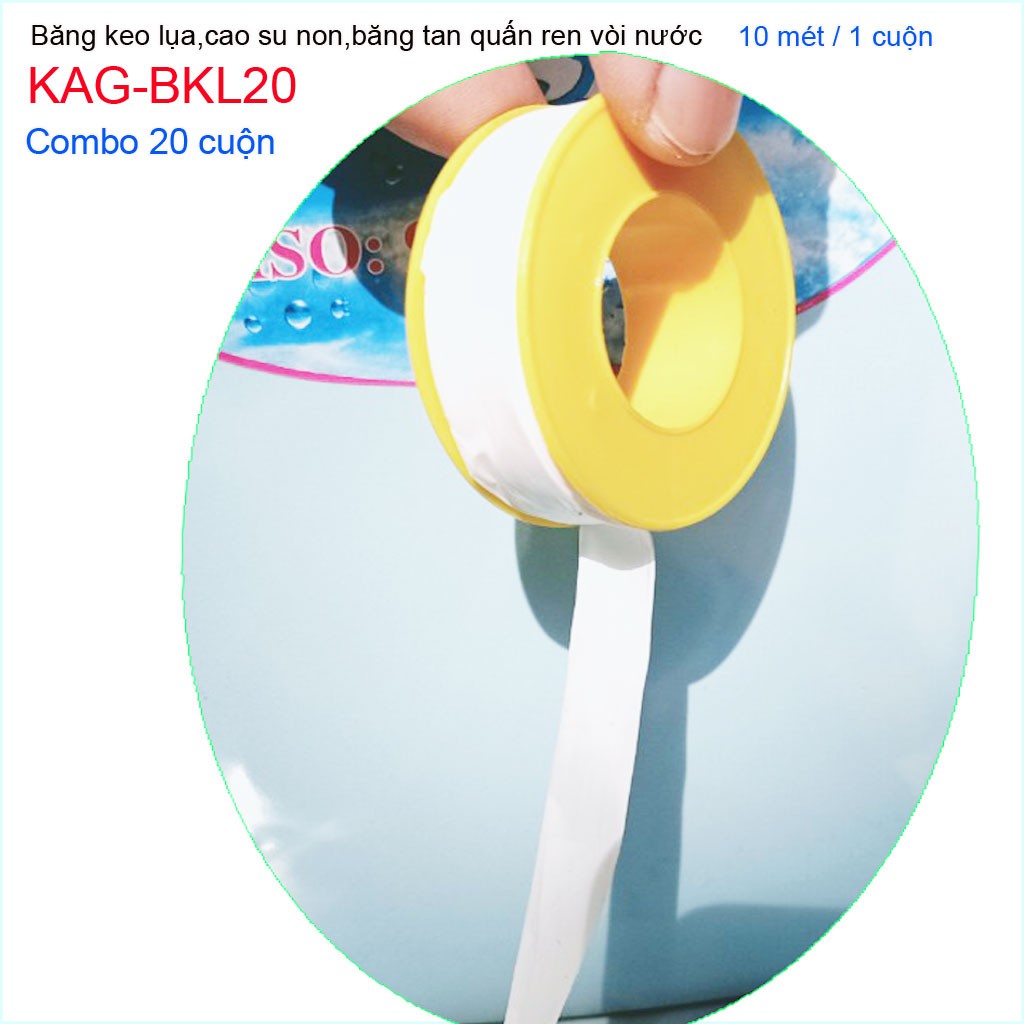 Giới thiệu Combo20 hộp băng keo lụa 10m, combo20 cuộn cao su non 10 meters quấn ống nước KAG-BKL20