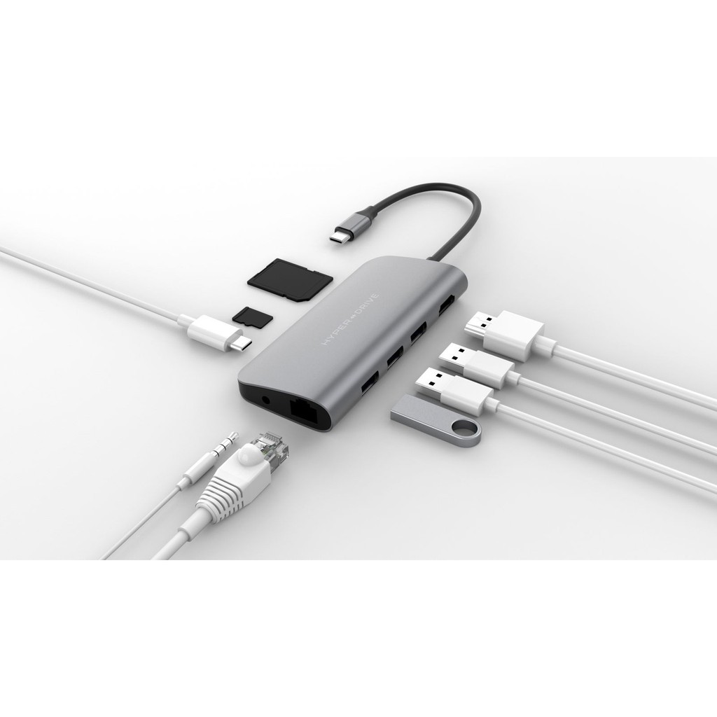 Cổng chuyển HyperDrive Power 9-in-1 USB-C HUB hỗ trợ xuất từ 1 cổng USB-C của Macbook Pro 12, 13inch, 15inch 2016/2018, iPad Pro 2018 hay các dòng Laptop sử dụng USB-C- Có 9 cổng kết nối: