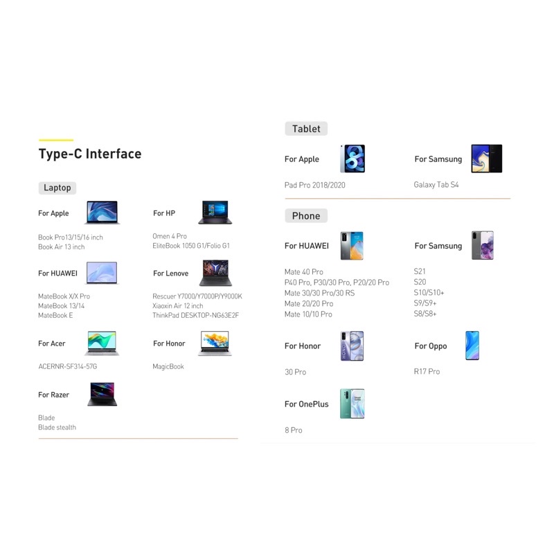 ✔️Thiết bị áp dụng: Máy tính laptop Type-C dòng chính, điện thoại di động như Apple Book Pro 2016/2017/2018/2019/2020, Apple Book Air 2018/2019/2020, v.v.