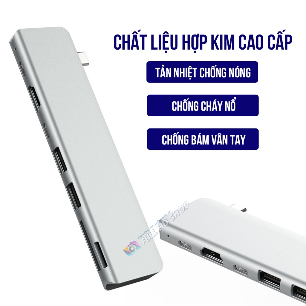 Cổng Chuyển Đổi Type C Sang HDMI/USB/ Type C/Đầu đọc thẻ nhớ Phụ Kiện Macbook Chia Cổng 7 trong 1 Full HD Shop Mã HD16