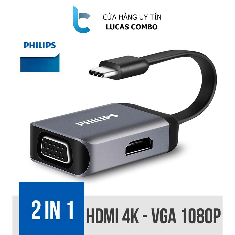 Máy tính & Laptop > Phụ Kiện Máy Tính > Bộ chia cổng USB & Đọc thẻ nhớ || Cổng Chuyển/Hub USB-C Ra HDMI Và VGA PhilipsCòn hàng