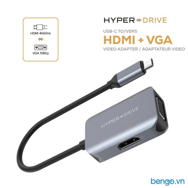 Cổng chuyển HyperDrive 2 in 1 USB-C qua HDMI/VGA 4K - HD-C2HV-----------------------------