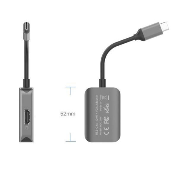 Cổng Chuyển HyperDrive 4K HDMI/VGA 2 IN 1 USB-C Hub HD-C2HVHD-C2HV còn hỗ trợ xuất màn hình 1080P/60Hz qua cổng VGA và 4K60Hz qua cổng HDMI, xuất 2 màn hình cùng lúc trên hệ điều hành Win với độ phân giải 1080P. Cái tuyệt vời nhất là giá HD-C2HV vô cùng ưu ái cho người dùng. Nó là chiếc Hub sẽ giúp cho đại đa số người dùng tại Việt Nam có thể sử dụng chiếc USB-C Hub của HyperDrive.
