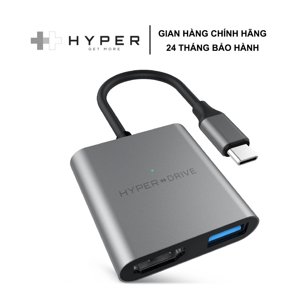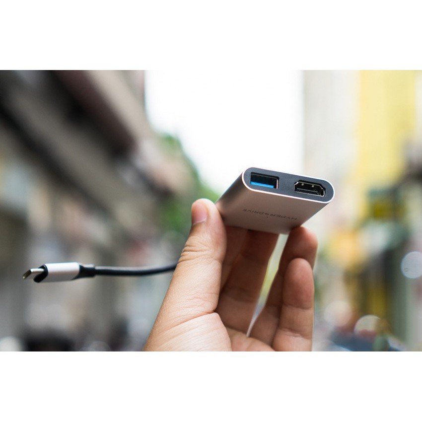 CỔNG CHUYỂN HYPERDRIVE 4K HDMI 3-IN-1 USB-C HUB FOR MACBOOK, PC & DEVICESĐây còn được gọi là phiên bản nhỏ của 4K HDMI 4 in 1 vì nó trang bị hầu hết các cổng như 4K HDMI 4 in 1 Hub nhưng ít đi 1 cổng USB TYPE A.