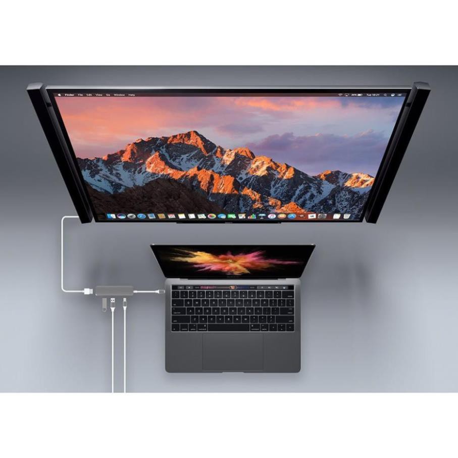 Cổng chuyển HyperDrive HDMI 4K USB-C Hub for MacBook, PC & Devices HD319E-GRAYHyperdrive HDMI 4K hub hỗ trợ xuất từ 1 cổng USB-C của Macbook Pro 12, 13″15″ 2016/2017 hay các dòng Laptop sử dụng USB C ra 4 cổng: