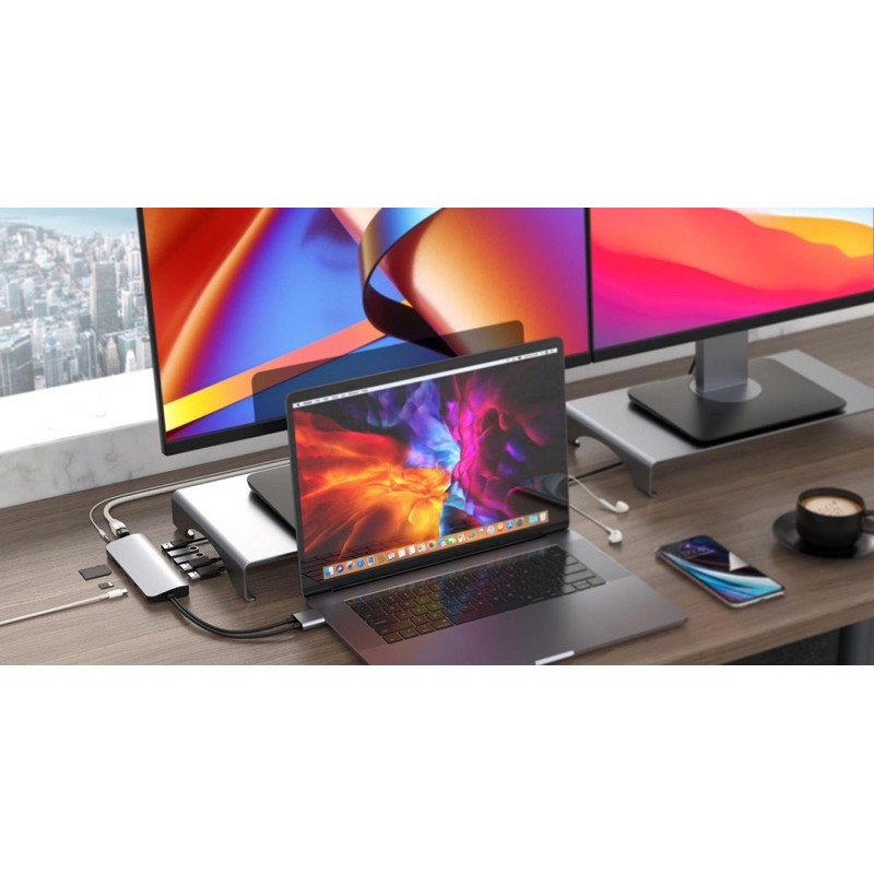 HYPEDRIVE VIBER 10-IN-2 USB-C HUB hỗ trợ xuất từ 2 cổng USB-C thành 10 cổng trên MacBook Pro / Airđời mới. Cho phép MacBook Pro / Air kết nối với màn hình mở rộng 2 màn hình cùng lúc qua 2 cổng HDMI với độ phân giải và tốc độ cực lớn lên đến 4K60Hz. HYPEDRIVE VIBER 10-IN-2 USB-C HUB thiết kế cực kì thông minh và tiện lợi bằng cách trượt lại các cáp USB-C riêng biệt để kết nối với bất kỳ thiết bị USB-C nào dưới dạng Hub USB-C 9 trong 1 hoặc bộ chuyển đổi USB-C sang HDMI, đây là cách sử dụng nếu chúng ta đang sử dụng thiết bị chỉ cổng 1 cổng USB-C.