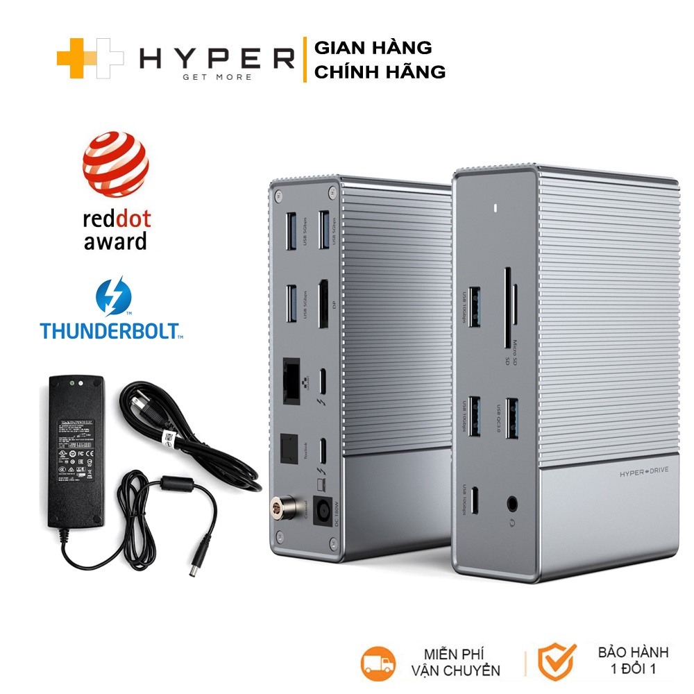 BỘ CỔNG CHUYỂN HYPERDRIVE GEN2 16-IN-1 THUNDERBOLT 3 DOCKING STATION VÀ BỘ NGUỒN DC 180W CHO MACBOOK/CHROM/PC/LAPTOP (HD-G2TB3)👉 Phân phối chính hãng tại Việt Nam bởi PHỤ KIỆN VÀNG