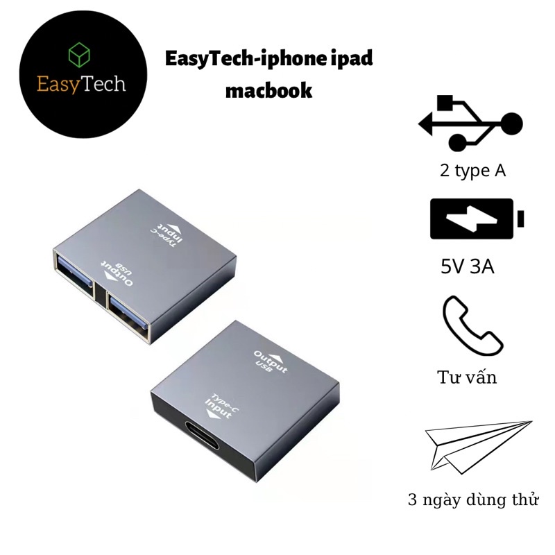 cổng chuyển type C to usb type A, type C ra usb 3.0, type C to 2 Type C
