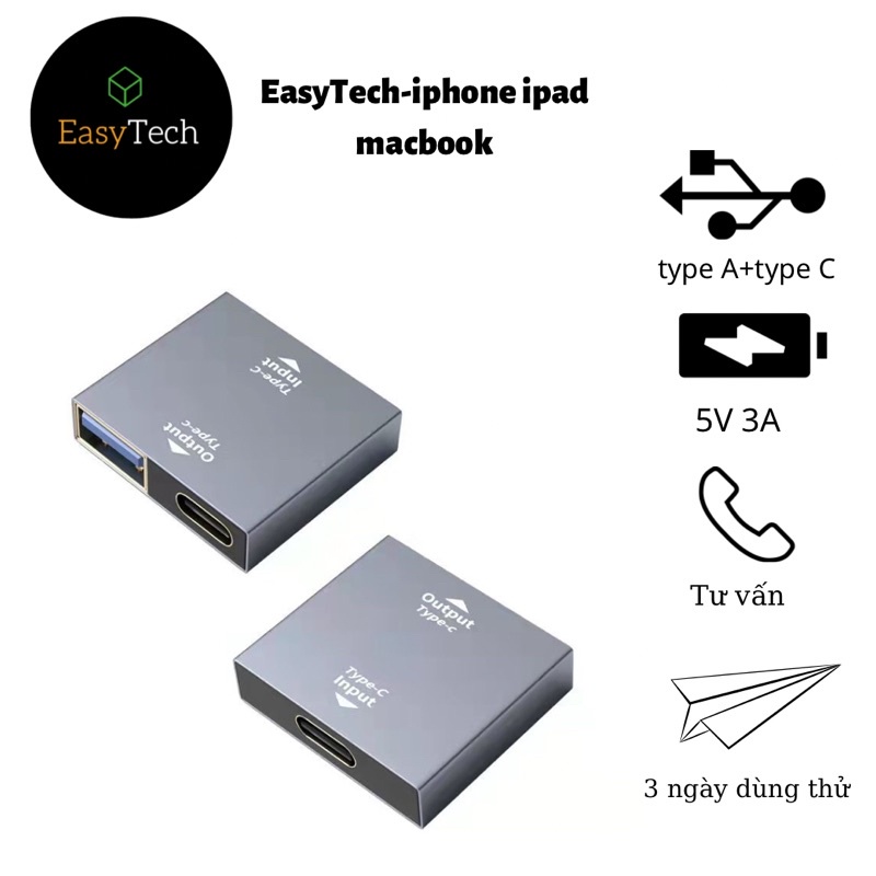 Giới thiệu cổng chuyển type C to usb type A, type C ra usb 3.0, type C to 2 Type C