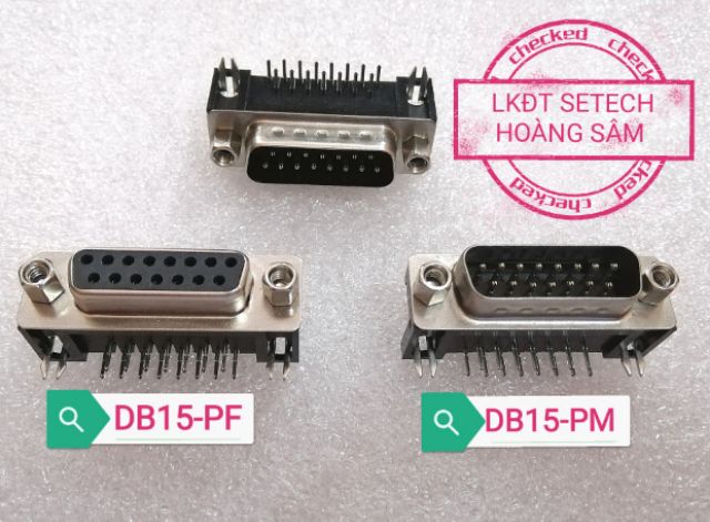 3. Cổng DB15-PF màu đen 15 chân vuông cắm board hàn mạch, 2 hàng chân, trên mặt có đánh số chân hàng trên từ phải sang 1-3-5-7; hàng dưới từ phải sang 9-11-13-15.