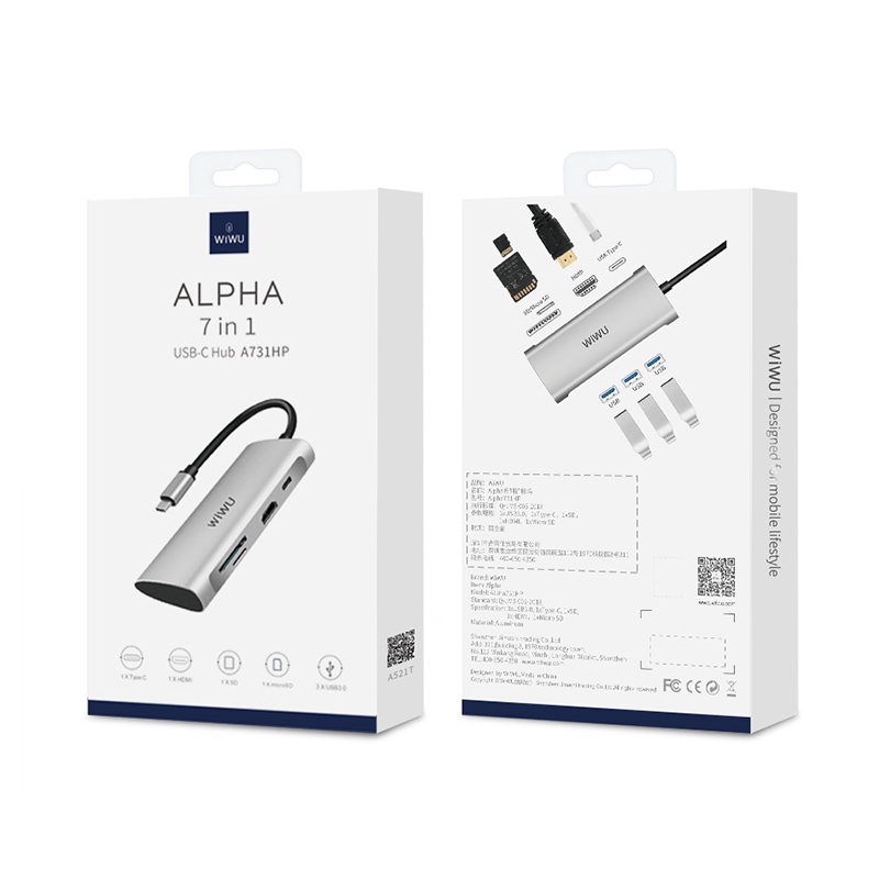 WiWU Alpha 7-in-1 Multiport USB C Hub Laptop. Thiết kế 7 trong 1