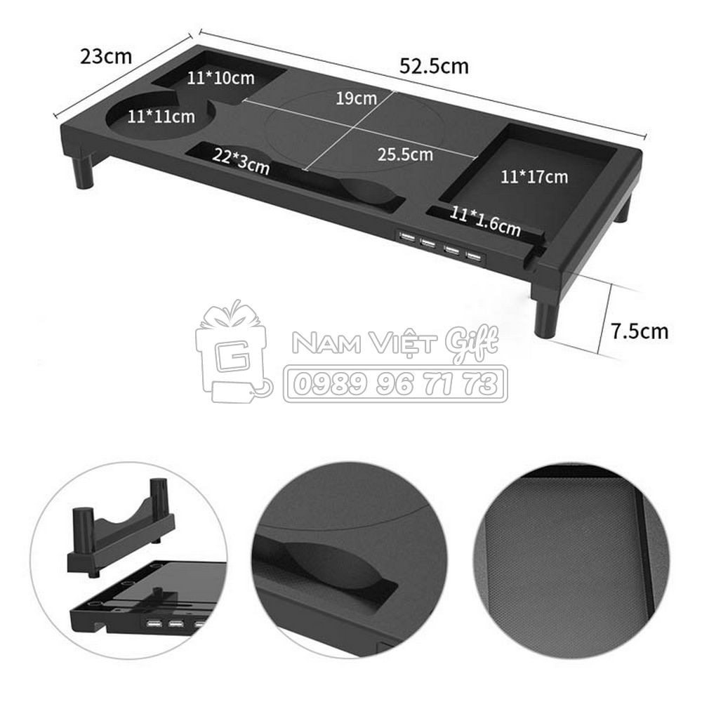 ☑️Giá có 4 chân cao 7.5cm, tạo thành không gian trống để bàn phím và chuột gọn gàng.